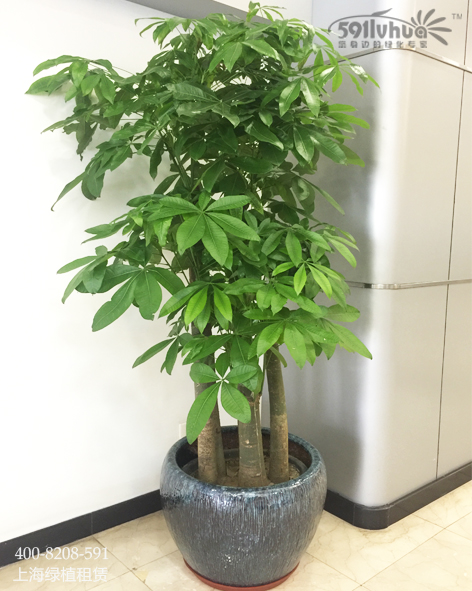 發(fā)財(cái)樹(shù)為常綠喬木,樹(shù)高可達(dá)10米左右。掌狀復(fù)葉互生,葉柄長(zhǎng)10~28厘米;小葉5~9枚,葉長(zhǎng)橢圓形、全緣,葉前端尖,長(zhǎng)約10~22厘米,羽狀脈,小葉柄短?;▎紊谌~腋,有小苞片2~3枚,花朵淡黃色。寓意著“生意興隆,財(cái)源滾滾”。